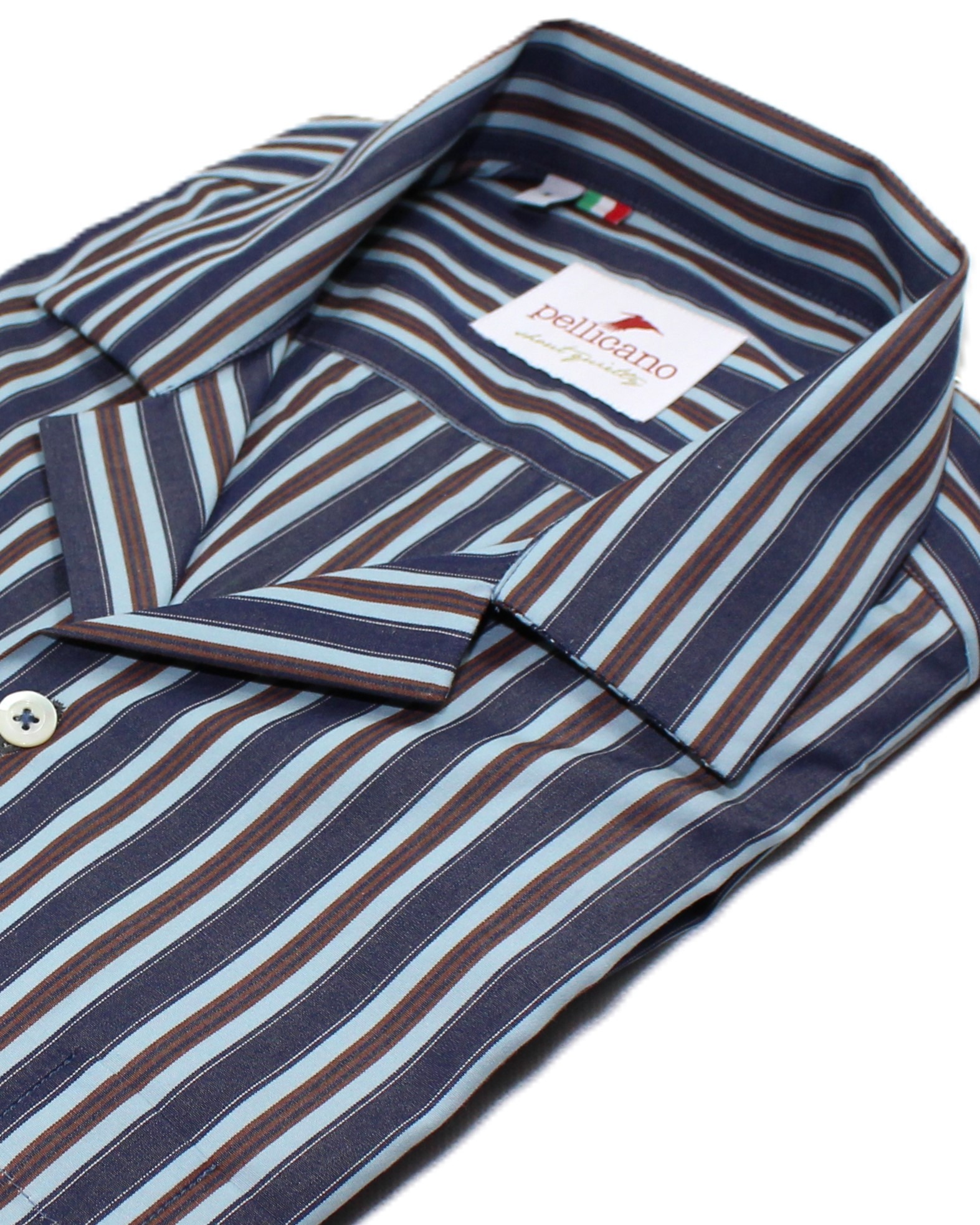 Cuban collar blue stripe angle 1